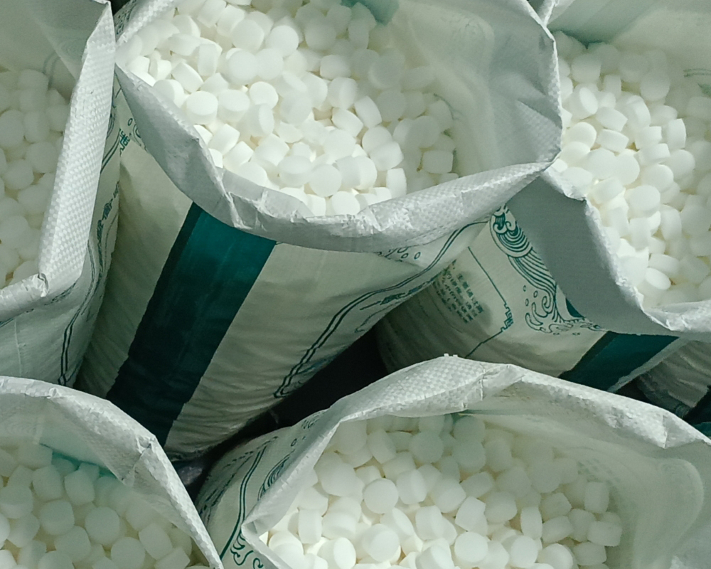 精良装备(高纯度软水盐):纯度高达99.6%以上。溶解后几乎无残留,能确保再生效率最高,并有效防止杂质堵塞控制阀、污染树脂,极大延长软水机寿命。